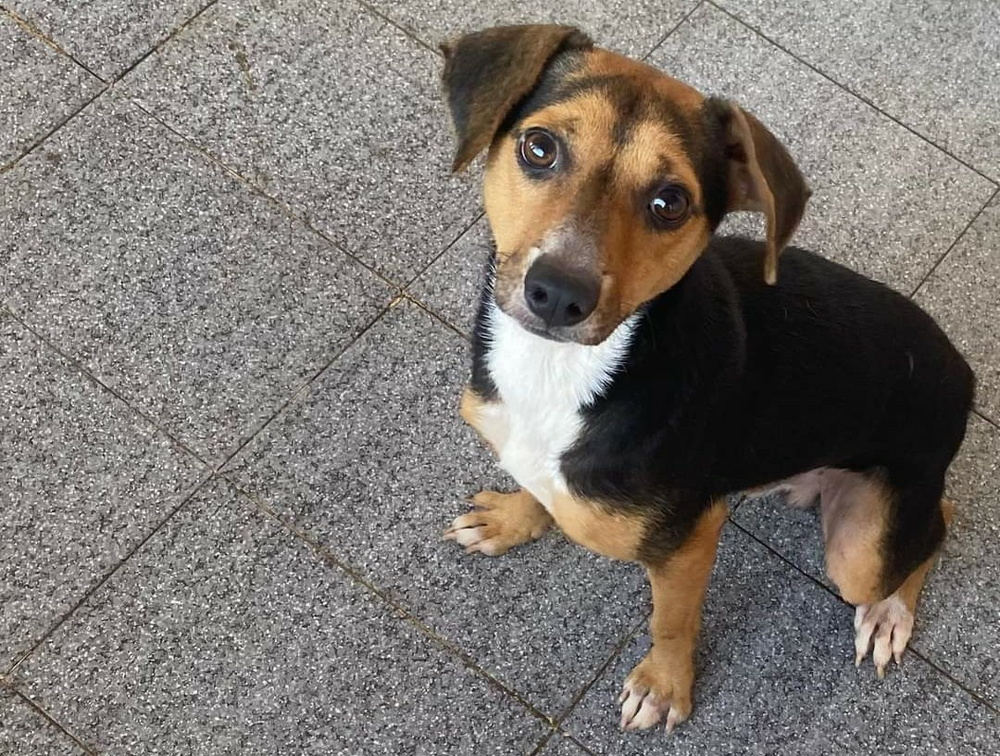 Rios, o cão que foi lançado no rio para morrer afogado, aguarda uma adoção.